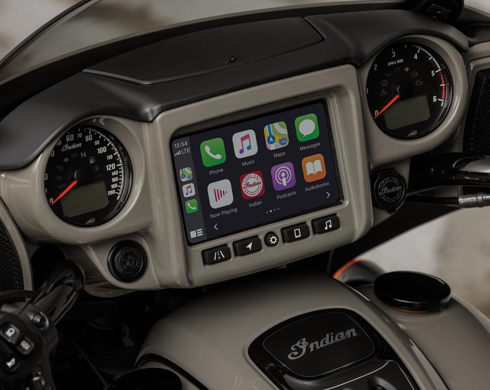 | Standard Equipment | 7" Touchscreen powered by RIDE COMMAND with Navigation and Apple CarPlay integration; Power Windshield; Highway Bars; Vinyl Rogue Seat; Tyre Pressure Monitoring; Remote-locking Hard Saddlebags; Selectable Ride Modes; Rear Cylinder Deactivation; ABS; Cruise Control; Keyless Ignition; 100 Watt Audio System with AM/FM, Bluetooth, USB, Smartphone Compatible Input, and Weatherband; 12V Charging Port |