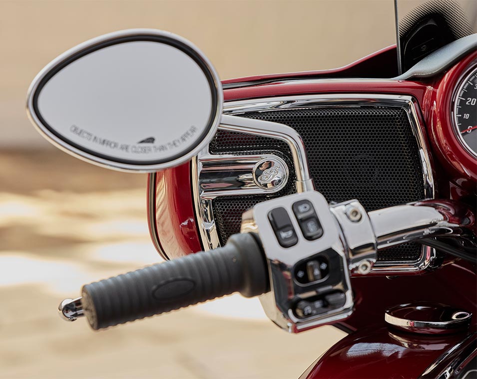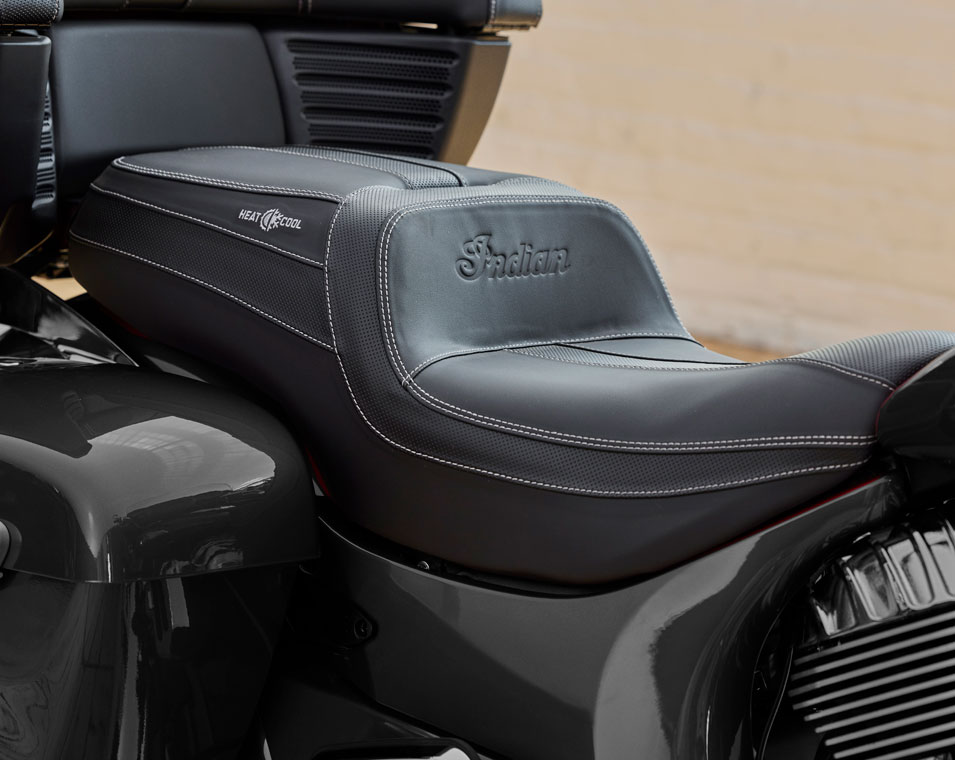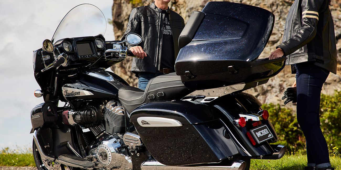 | Standard Equipment | 7" touchscreen powered by RIDE COMMAND with Apple CarPlay® integration; Power Windshield; Highway Bars; Vinyl Rogue Seats; Heated Grips; Adjustable Passenger Floorboards; 164 Litres of Storage; Tire Pressure Monitoring; Remote-locking Hard Saddlebags & Trunk; Selectable Ride Modes; Rear Cylinder Deactivation; ABS; Cruise Control; Keyless Ignition; 200 Watt Audio System with AM/FM, Bluetooth, USB, Smartphone Compatible Input; 12V Charging Port |